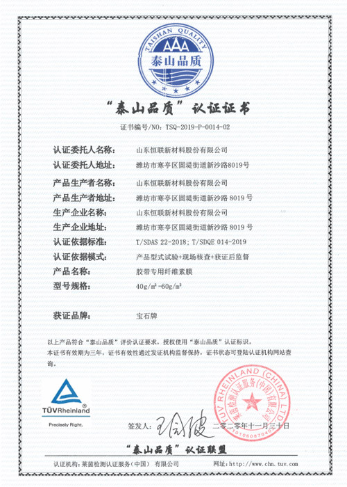 “泰山品質(zhì)”認(rèn)證證書(shū)