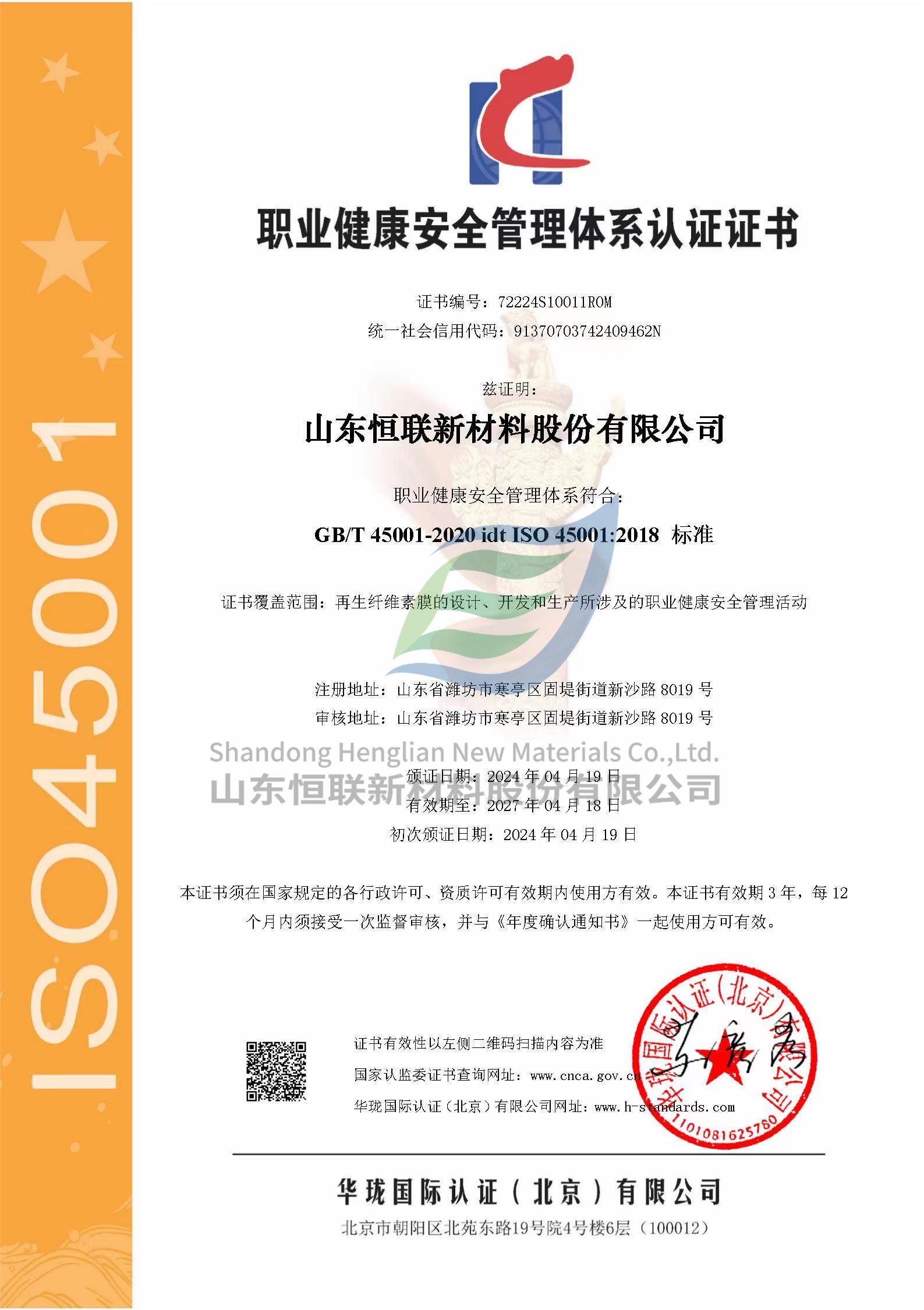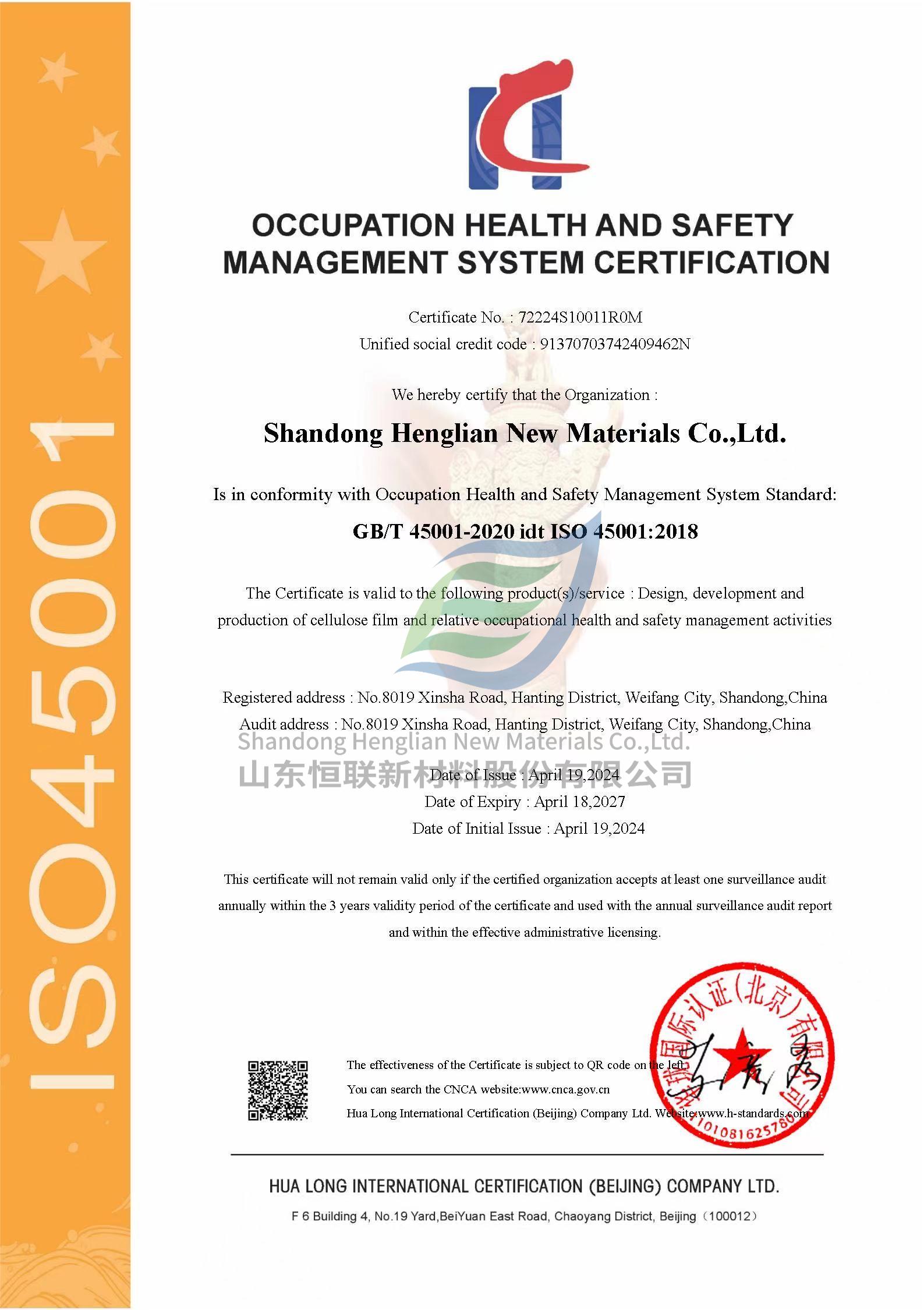 ISO45001職業(yè)健康安全管理體系認(rèn)證證書(shū)