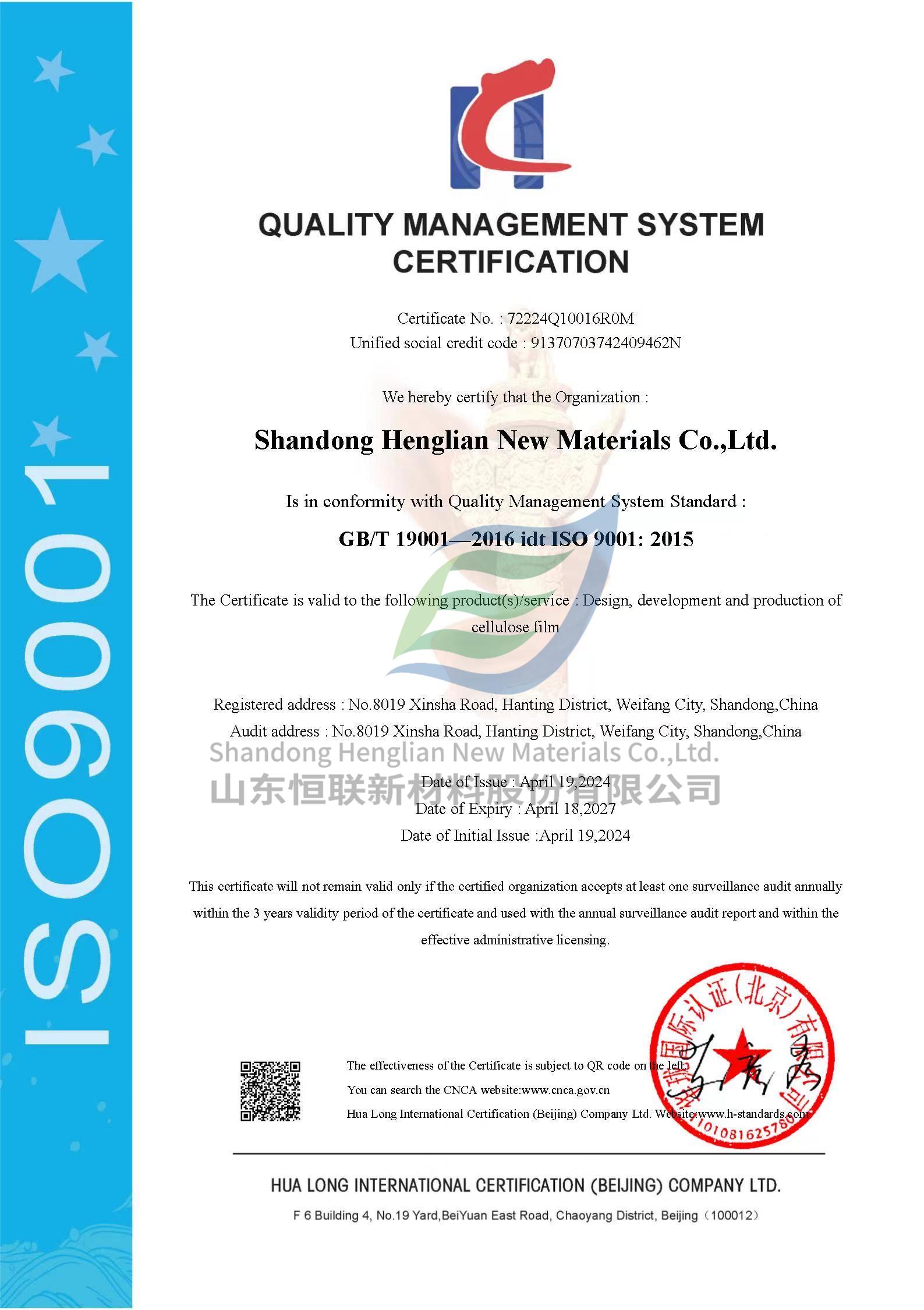 ISO9001質(zhì)量管理體系認(rèn)證證書(shū)