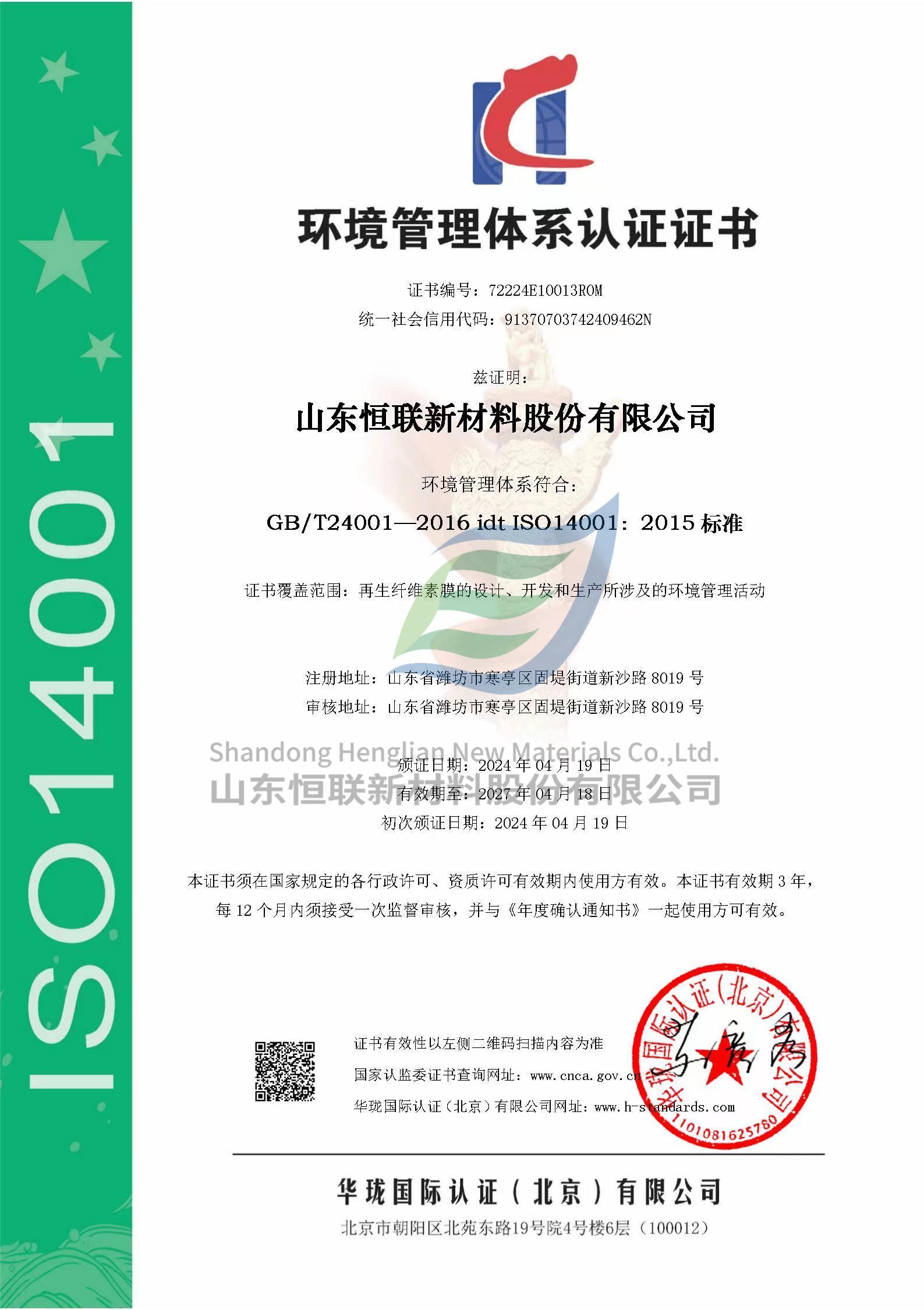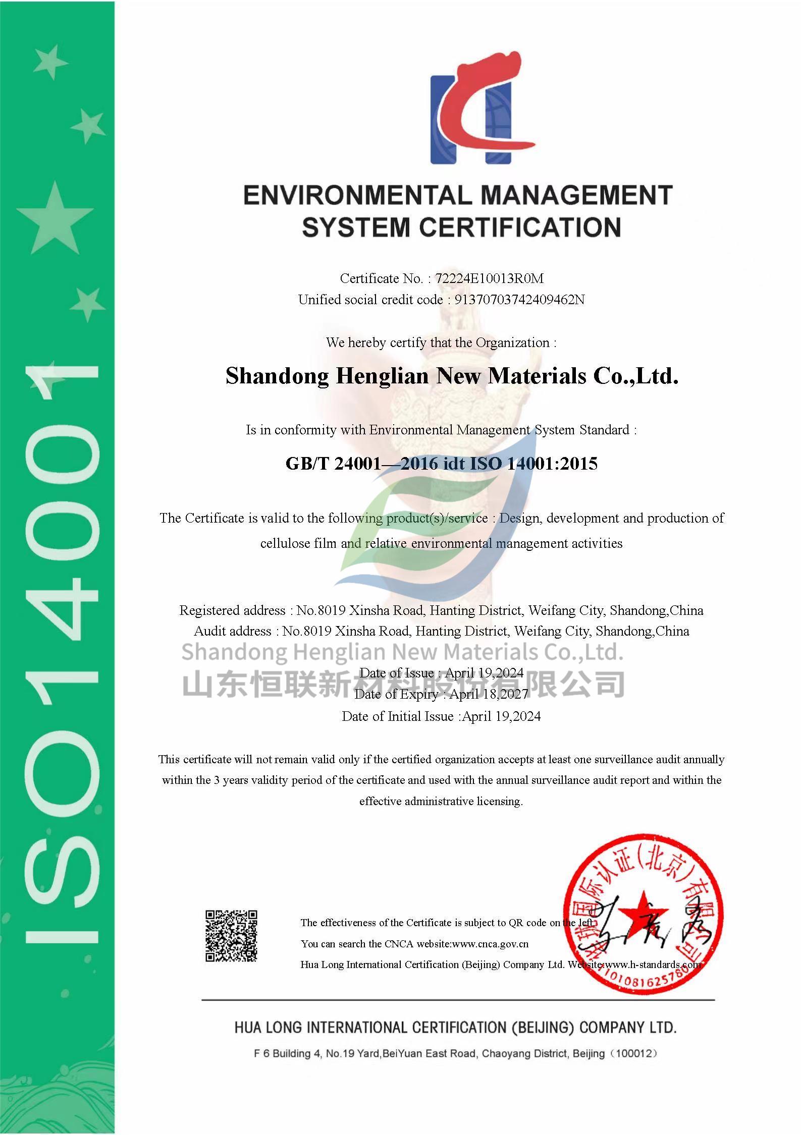 ISO14001環(huán)境管理體系認(rèn)證證書(shū)